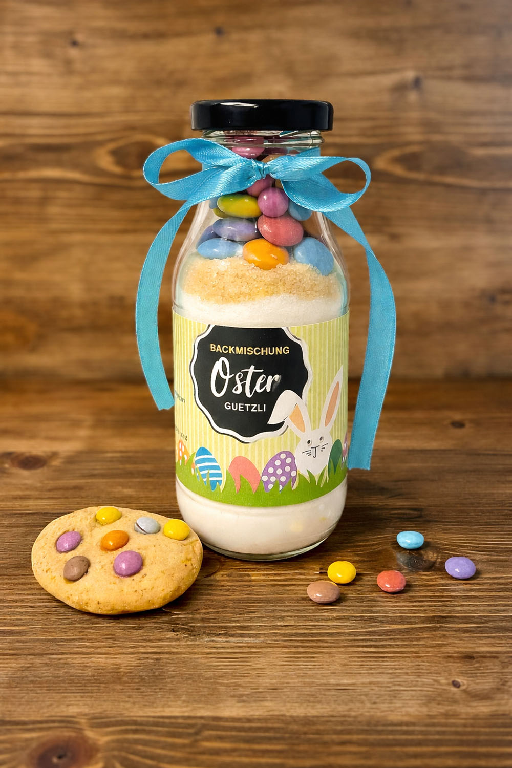 Eine liebevoll geschichtete Backmischung für knusprig-feine Oster-Guezli. Perfekt als Geschenk oder zum gemeinsamen Backen in der Osterzeit.