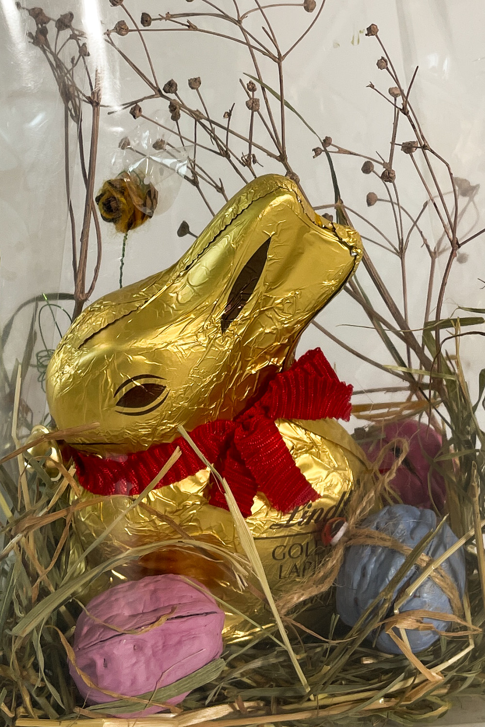 100 g Lindt Goldhase bemalte Glücksnüsse mit Sprüchen