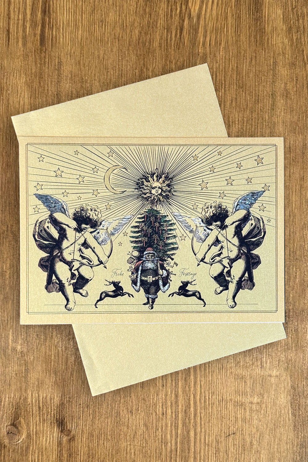 Weihnachtskarte „Zwei Engel mit Santa Claus“